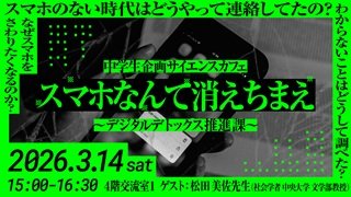 3/14(土) ジュニアクルーによるサイエンスカフェ 「スマホなんて消えちまえ ~デジタルデトックス推進課~」